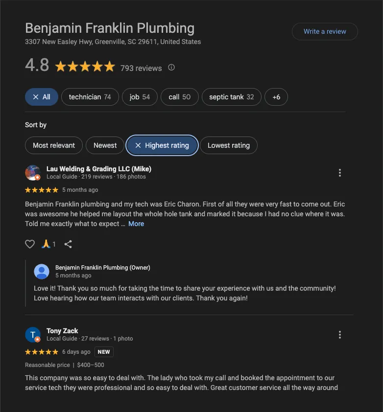 All Rights Reserved. 2025. Benjamin Franklin Plumbing Greenville